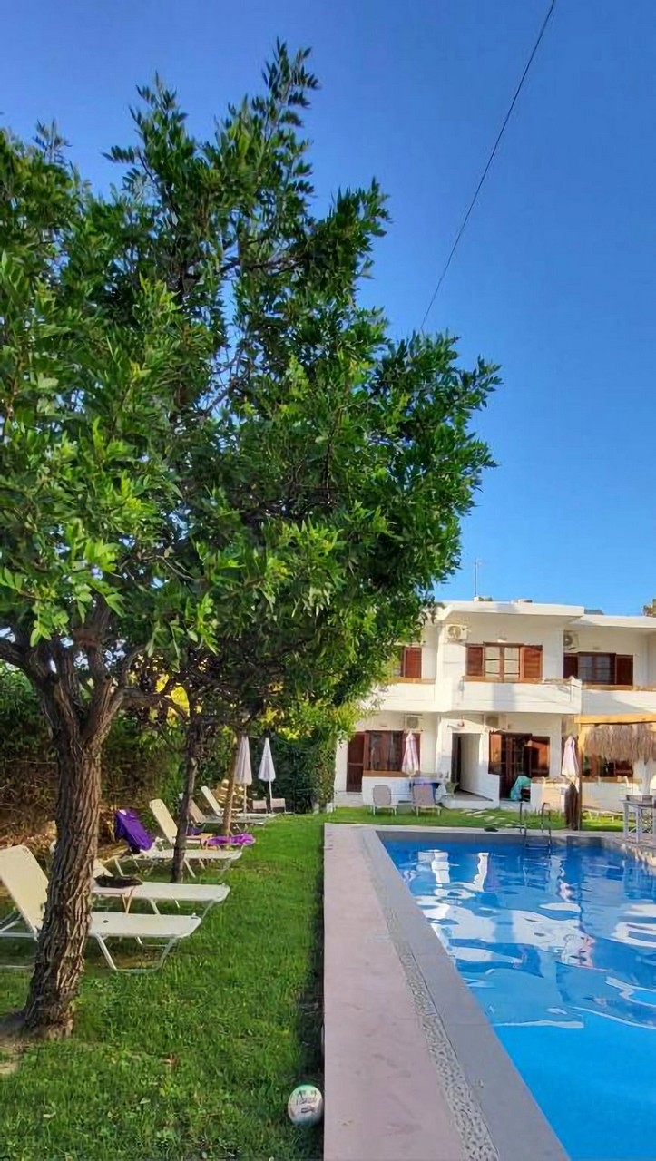On the northern point of the prefecture of Chania, on the island of Crete, only 30 steps from the sandy beach of Agia Marina with the azure, warm sea, where, if you are lucky you will see the caretta-caretta turtles that hatch in mid-summer.